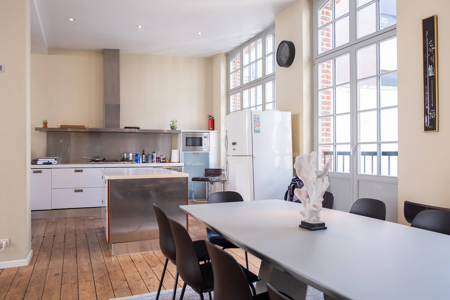 Located in the heart of the artistic neighbourhood of Saint-Gilles, in the calmth of a backyard (rue de la victoire), the Zero Studio distinguishes itself first by its architecture, which resembles the architecture of a former fabric factory from the 17th century.
