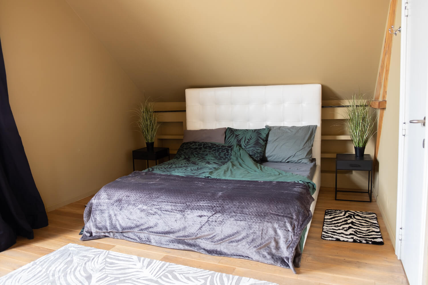 The space also offers a private courtyard, a ground floor with a reception area, an equipped kitchen + a dining room. On the first floor, a 180m2 duplex is available for residence bookings where there is a fifth studio!